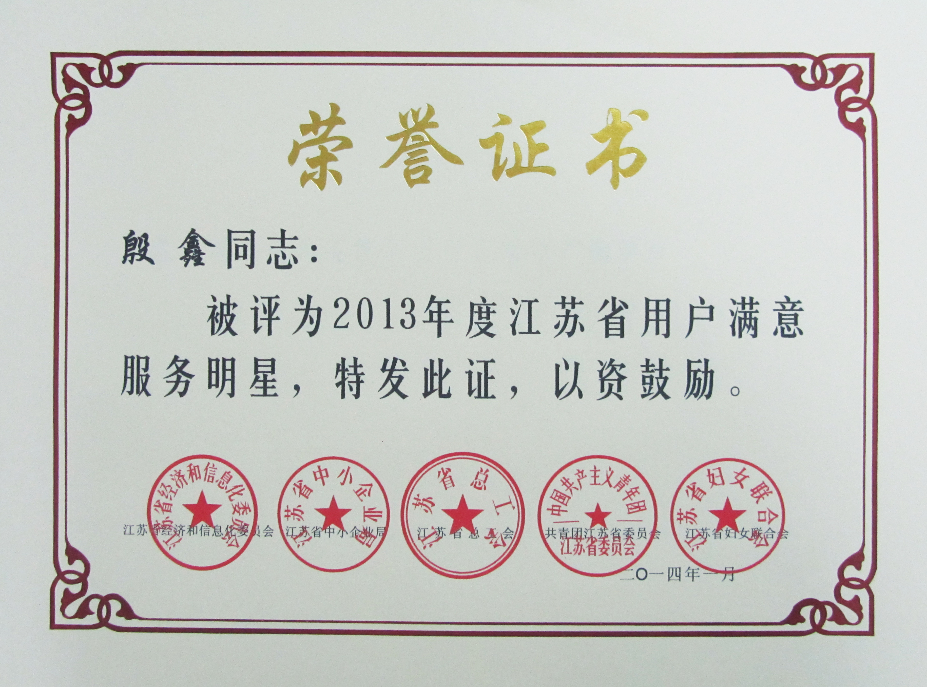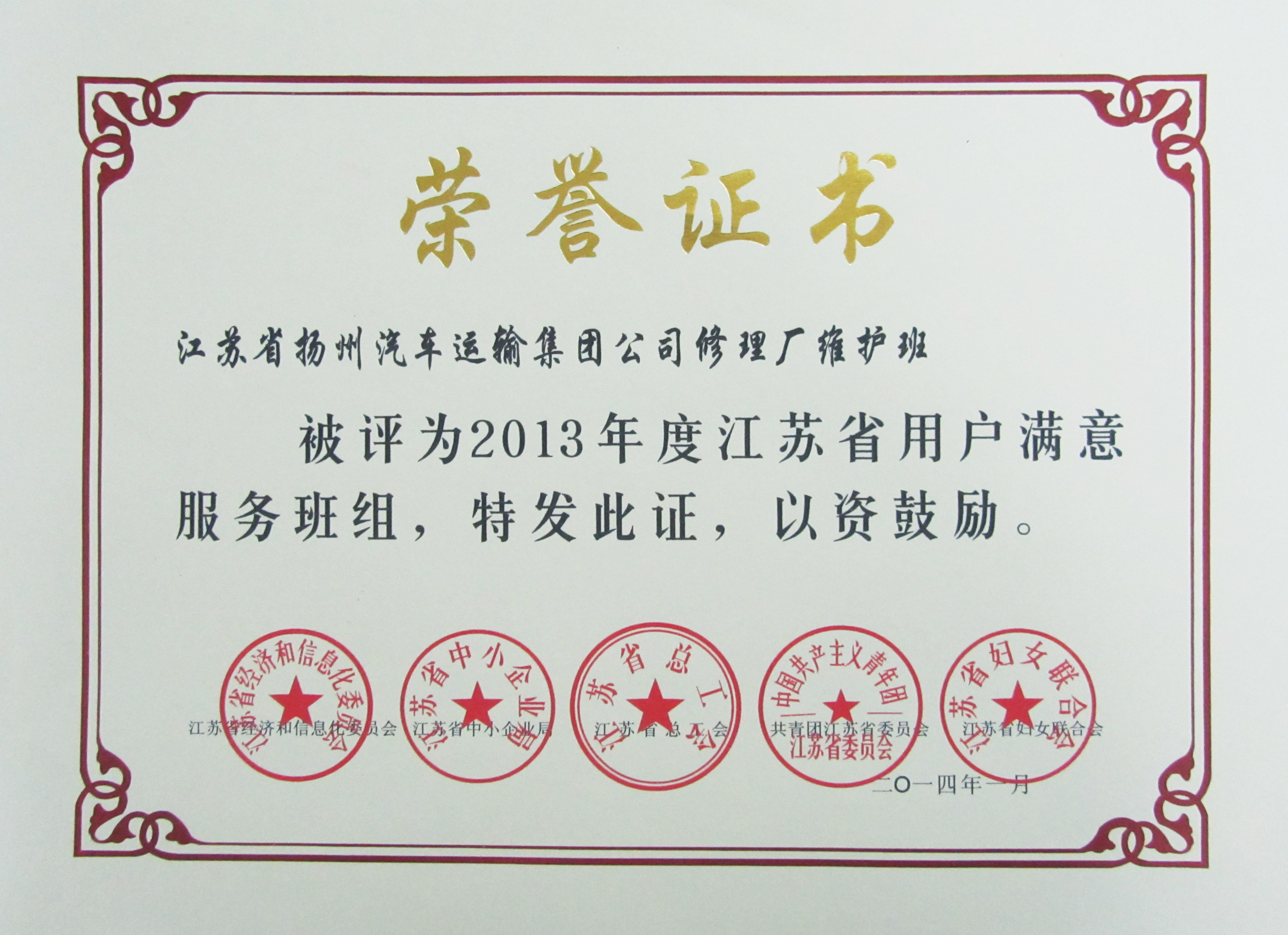 日前,由江蘇省經(jīng)濟(jì)和信息化委員會(huì)、江蘇省總工會(huì)、江蘇省中小企業(yè)局等五家單位聯(lián)合開展的2013年度創(chuàng)建“用戶滿意服務(wù)”活動(dòng)評審結(jié)果揭曉,我司修理廠維護(hù)班榮獲2013年度江蘇省“用戶滿意服務(wù)”班組,快客分公司殷鑫同志榮獲2013年度江蘇省“用戶滿意服務(wù)”明星稱號。