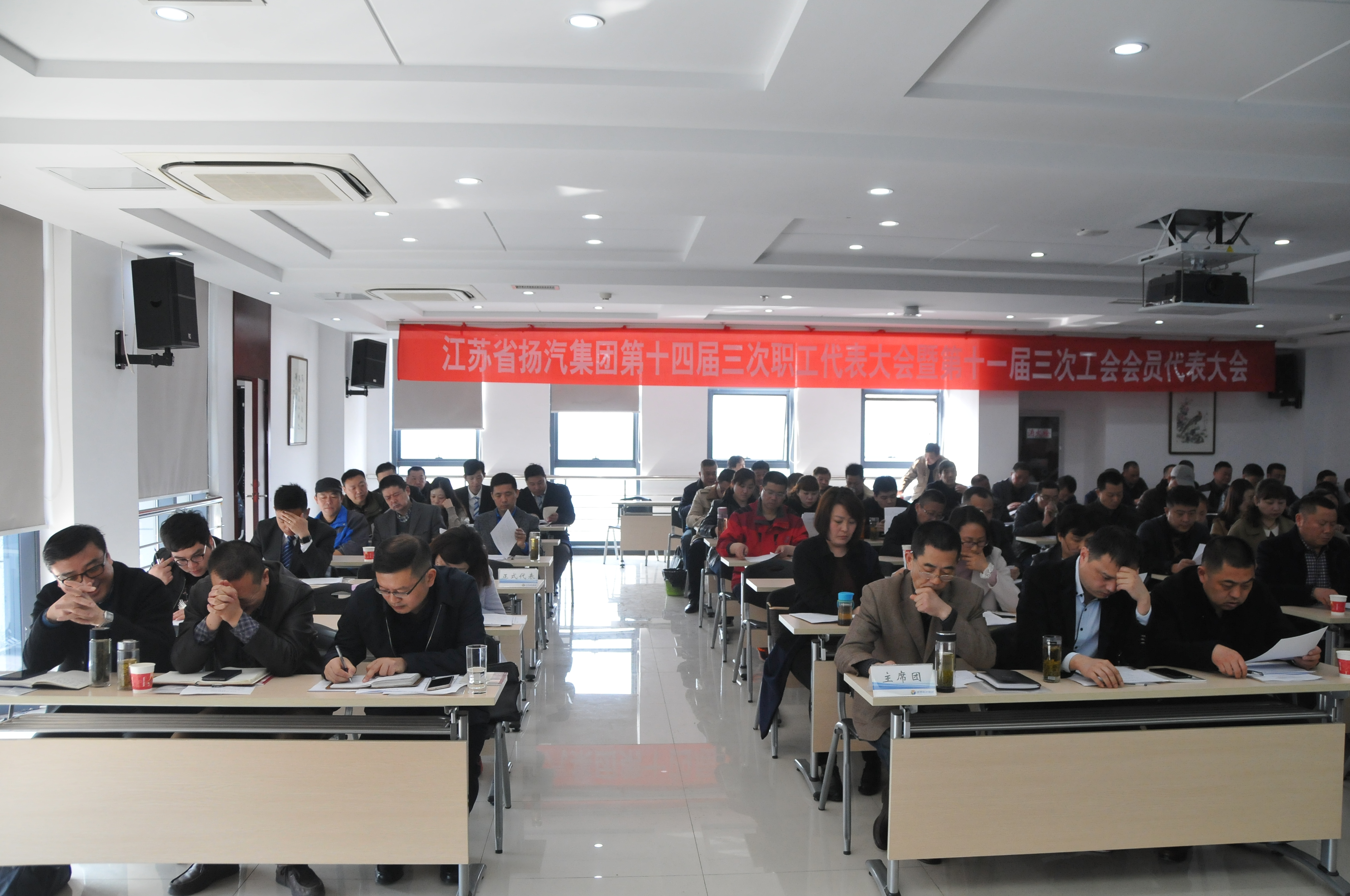 3月27日,揚(yáng)汽集團(tuán)第十四屆三次職工代表大會在揚(yáng)汽教培中心會議室隆重召開。集團(tuán)公司領(lǐng)導(dǎo)班子、各部門基層單位的56名職工代表及列席會議的20名黨政工主要負(fù)責(zé)人出席了會議。主議由集團(tuán)公司常務(wù)副總經(jīng)理談衛(wèi)國主持。-----揚(yáng)汽集團(tuán)召開第十四屆三次職工代表大會暨第十一屆三次會員代表大會