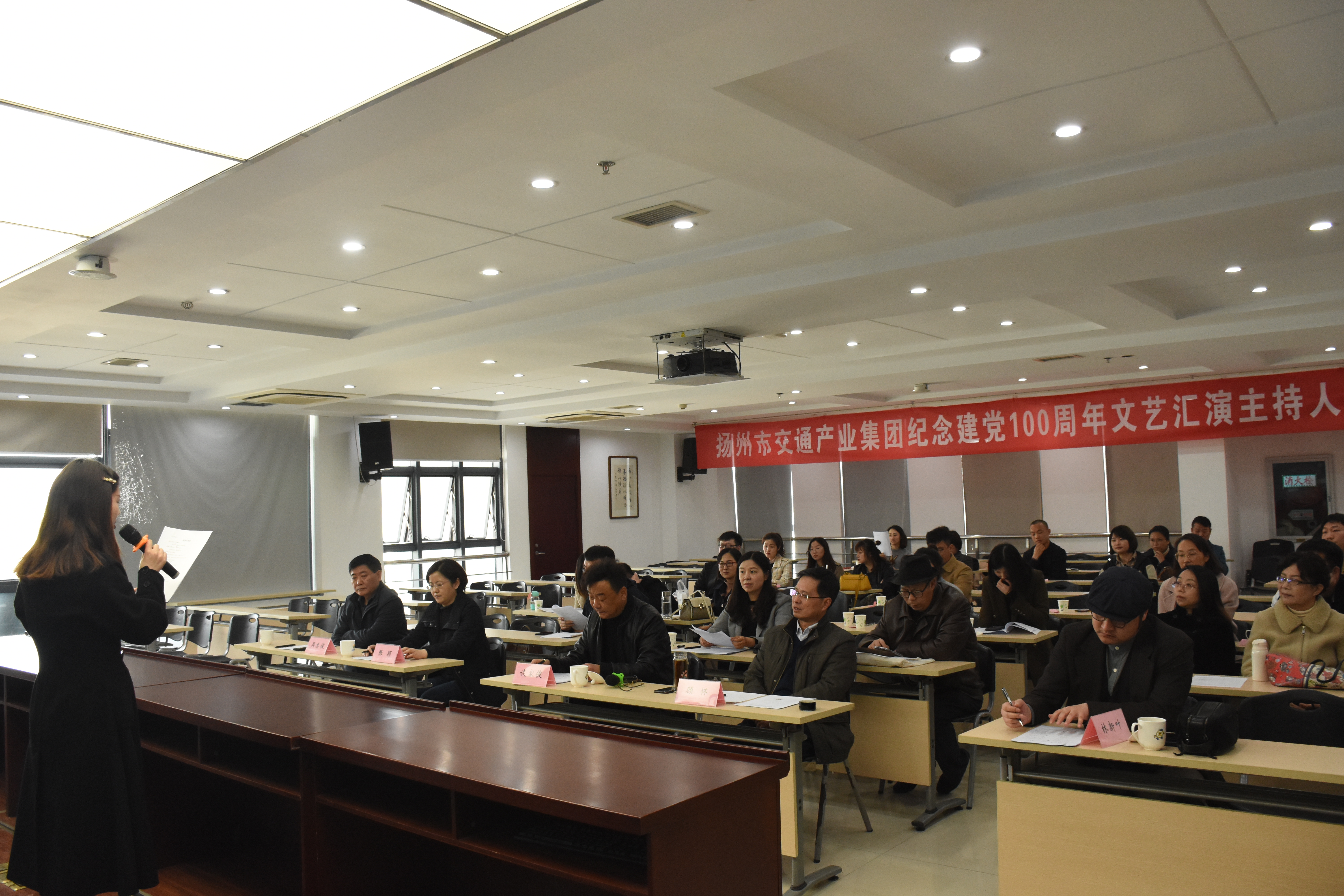 為籌備好慶祝建黨100周年文藝匯演,4月8日下午,文藝匯演的主持人選拔賽在揚(yáng)汽集團(tuán)教培中心舉行,來自交通產(chǎn)業(yè)系統(tǒng)內(nèi)的19名參賽選手在這里進(jìn)行了激烈的角逐。交通產(chǎn)業(yè)集團(tuán)黨委副書記張穎,副總經(jīng)理、工會(huì)主席吳忠俊,揚(yáng)汽集團(tuán)黨委副書記、工會(huì)主席顧懷、導(dǎo)演談家俊擔(dān)任本次主持人選拔賽的評(píng)委。