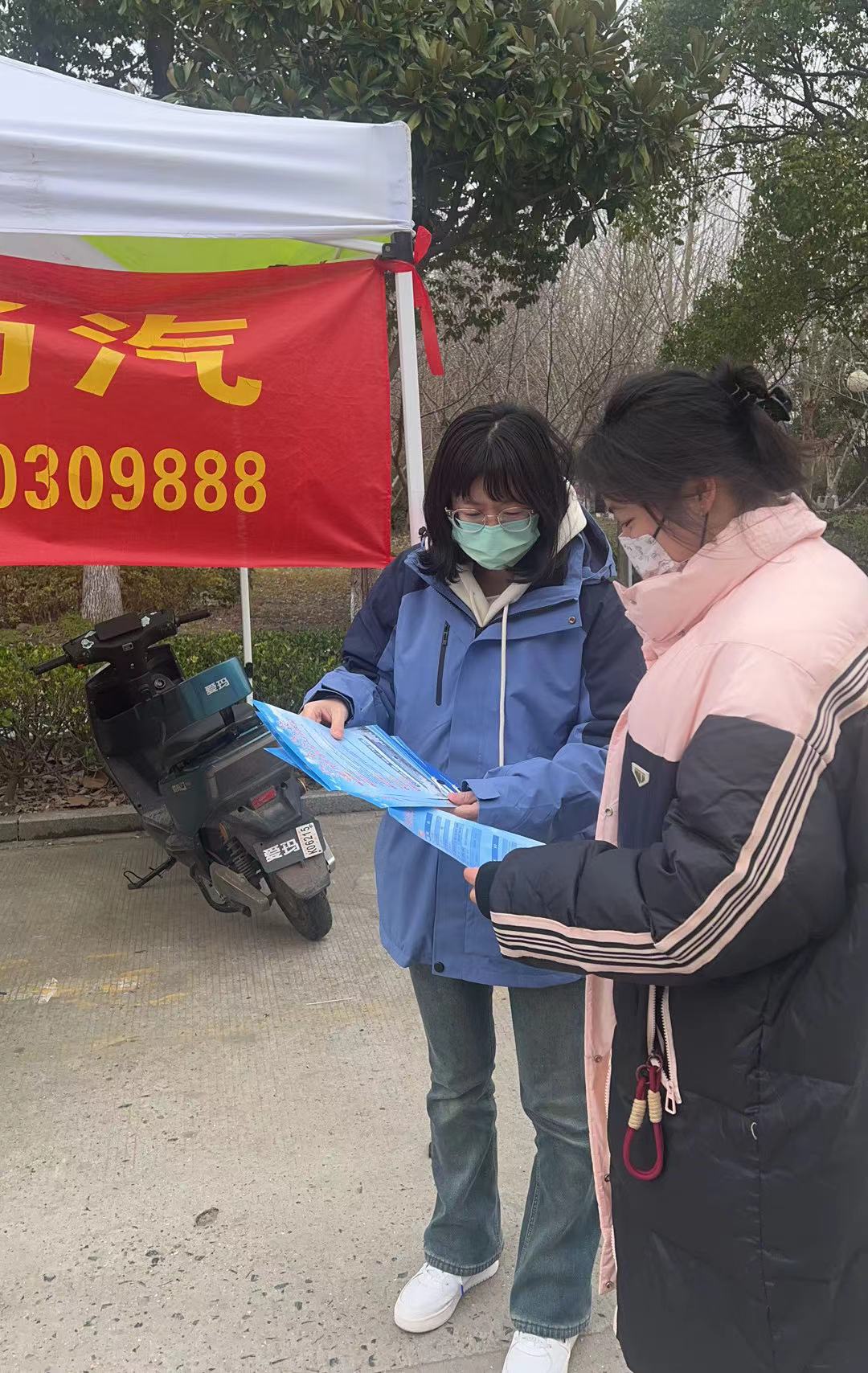 在江海學院里,她們用心、熱情地為學生們宣傳揚汽駕校品牌優(yōu)勢,一遍又一遍地講解報名學車流程及相關政策。天氣乍暖還寒,有時還下著雨,她們也依然堅守崗位,充分展現(xiàn)了新時代的巾幗風采。
