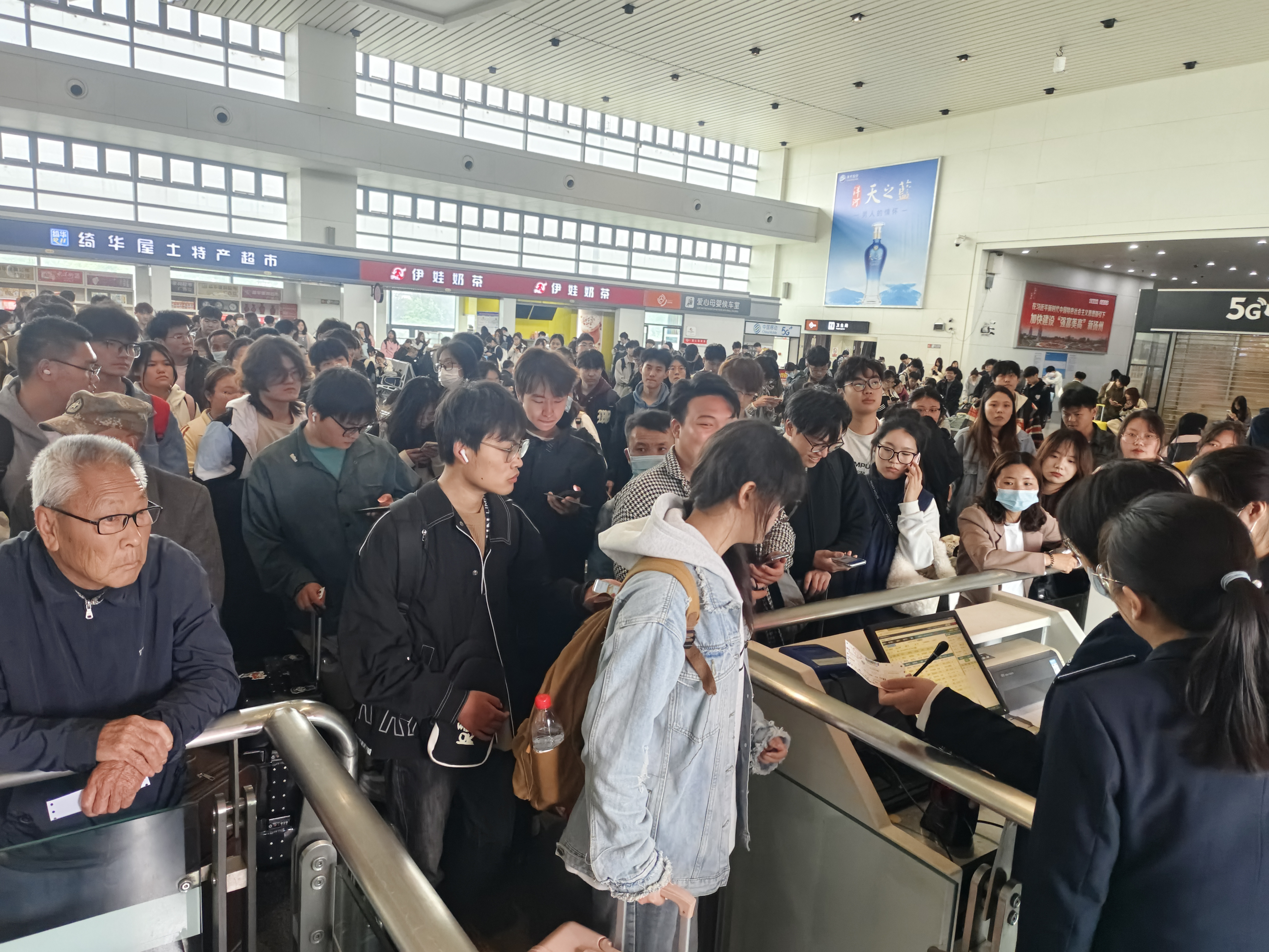 為方便旅客順利進站、安檢、購票、檢票,集團安排志愿者有序忙碌在各自點位上,他們戴上小紅帽,披上綬帶身穿紅馬甲,分工明確,職責清晰,在進站口、售票廳、安檢口、發(fā)車平臺等處,都有他們忙碌的身影。他們耐心的為旅客提供售票口咨詢、檢票口指引、出站口疏通及電梯口秩序維護等各項服務,熱心協(xié)助旅客搬運行李、解決突發(fā)困難,還針對老弱病殘等特殊群體進行引導和幫助。